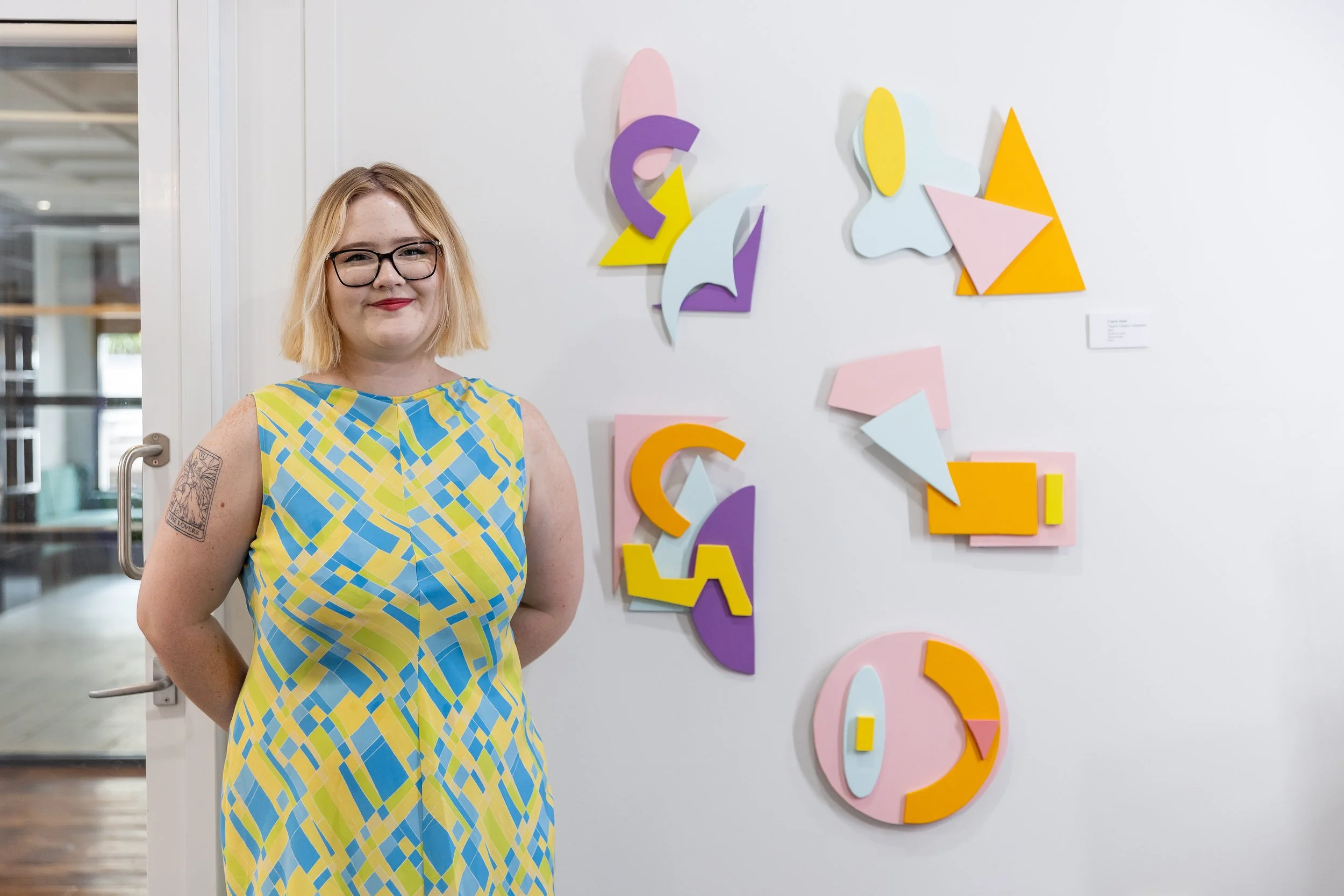 Claire Bear explores the transformation of fundamental shapes into dynamic compositions of optical, geometric forms, brought to life through luminous colour. Working across both two- and three-dimensional surfaces, her practice evokes a sense of play, memory, and visual curiosity.